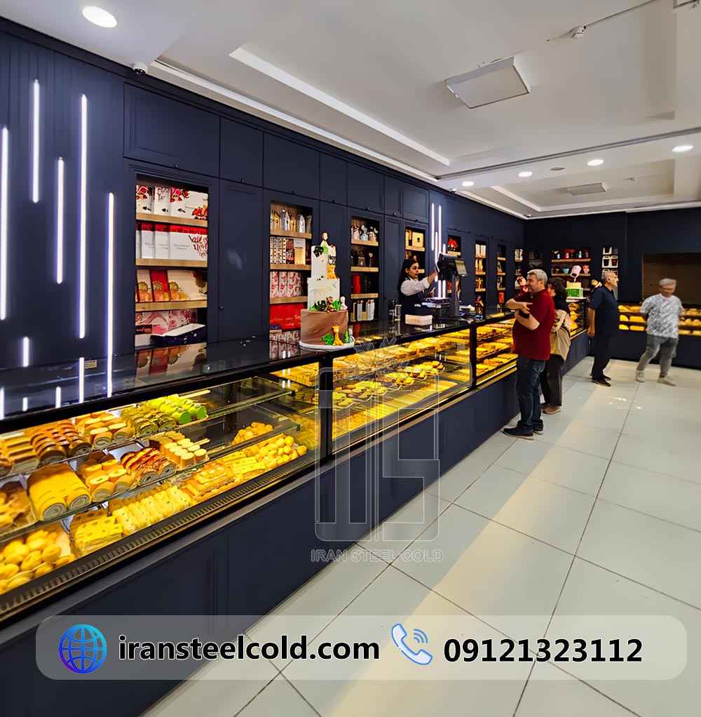 • نمایش بصری برجسته: طراحی تمام‌شیشه‌ای اجازه می‌دهد تا کیک‌ها و دسرها از زوایای مختلف دیده شوند و جلوه‌ای لوکس به فروشگاه بدهد.